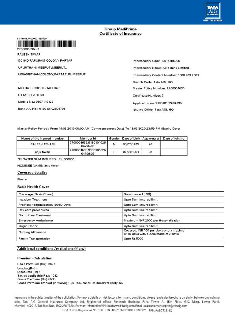 Tata AIG Health Insurance PDF PDF Insurance Medical Prescription