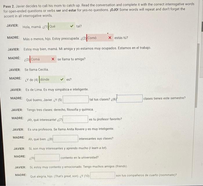 [Solved] Paso 2. Javier decides to call his mom to catch up. Read the