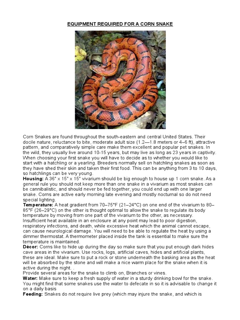 Care Sheet Corn Snake Nature Psychology & Cognitive Science