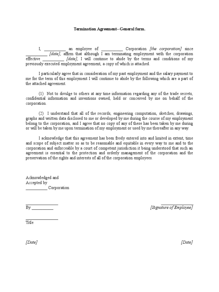 Web employee and employer had an employment agreement from [start date] to [termination date], in which they agreed that they would resolve any employment dispute as follows [method of dispute resolution, such as arbitration, and/or choice of law]. Termination forms are easy to create since there is not much detail in the sample form. Whether your reason has to do.