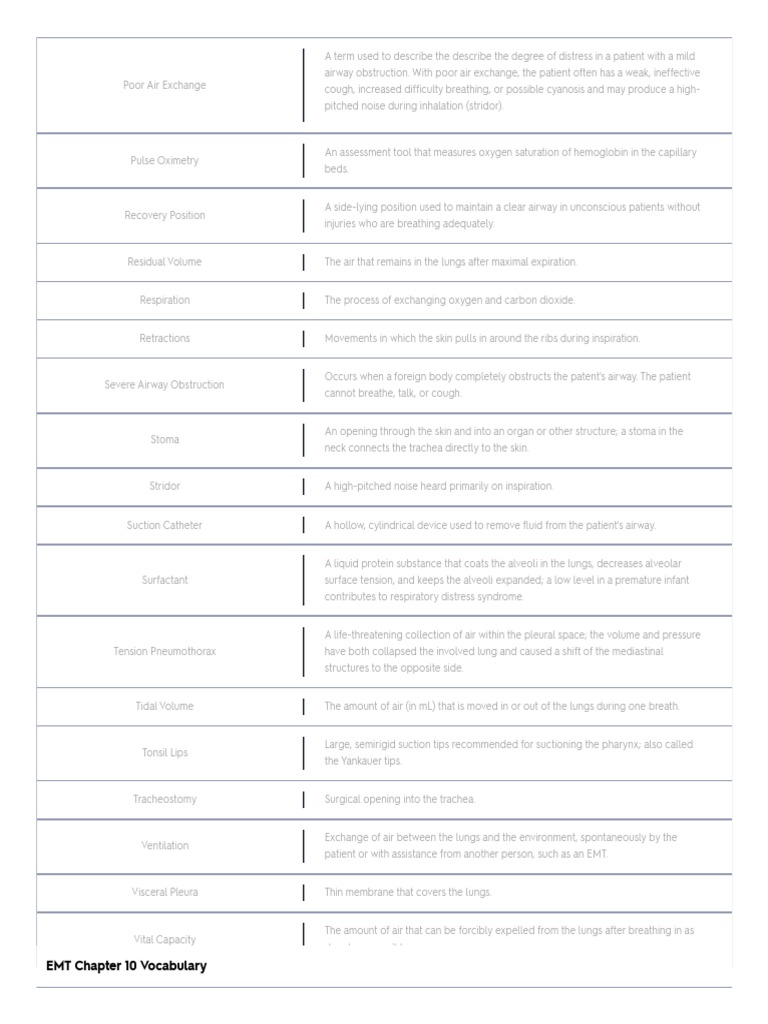 EMT Chapter 10 Vocabulary Flashcards PT 2 PDF Lung Respiratory
