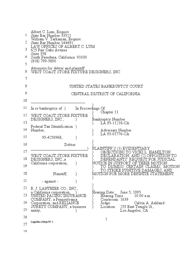 Evidentiary Objections and Opposition to Request for Judicial Notice
