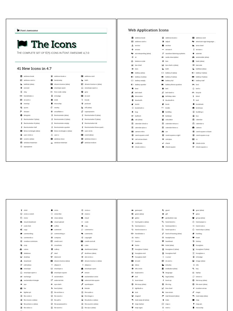 Font Awesome 4 7 0 Icons Cheatsheet PDF