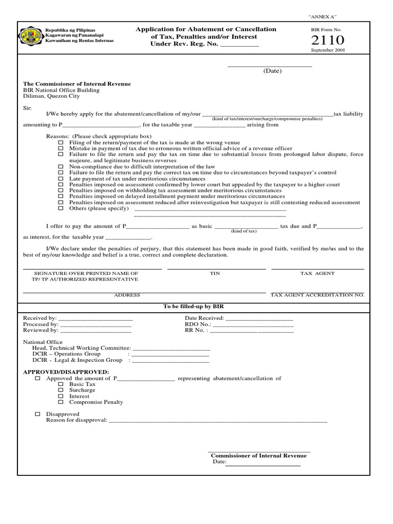 BIR Abatement Form Taxes Government Finances