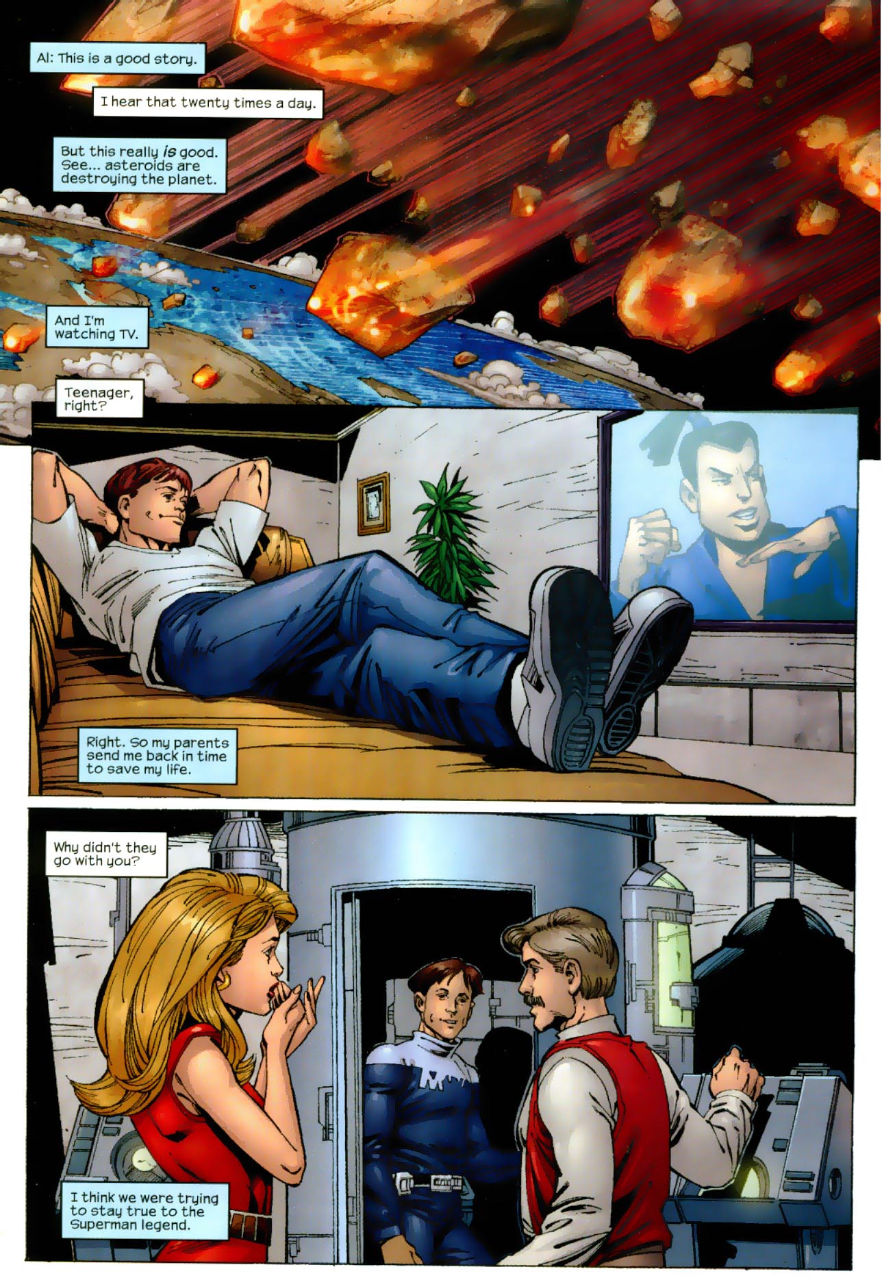 Comic title, issue #, issue year, variant info (usually the cover artists last name), and grade info. The series was written by bill jemas, and the stories involve satirical comments on comic book industry conventions and trends. Several thousand years in the future, aol rules the world. Cover girl appears in 7 issues. 5 for sale on ccl.