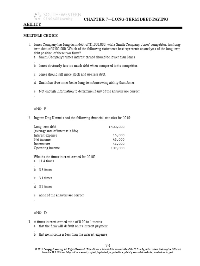 Chapter 7 Long Term Debt Paying Ability Solutions PDF Pension