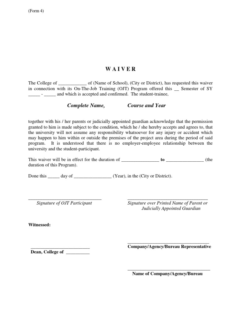 Parent's Waiver OJT