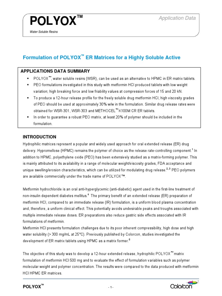 Polyox Form Peo Matrices Tablet (Pharmacy) Pharmaceutical Formulation