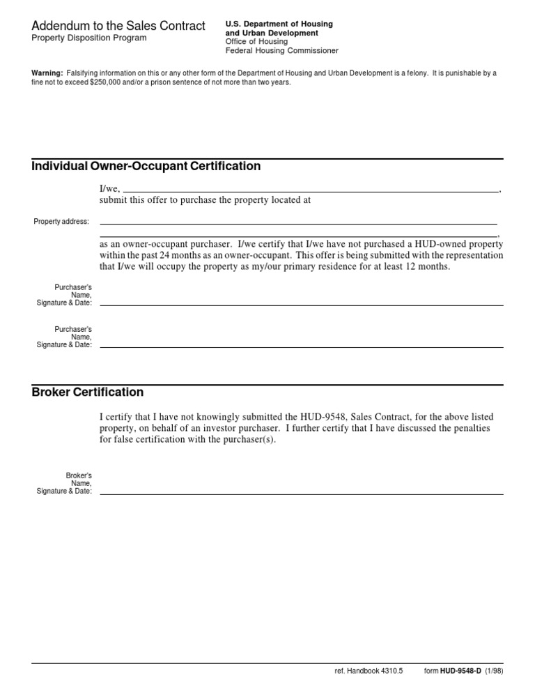 HUD Home Owner Occupant Certification Form